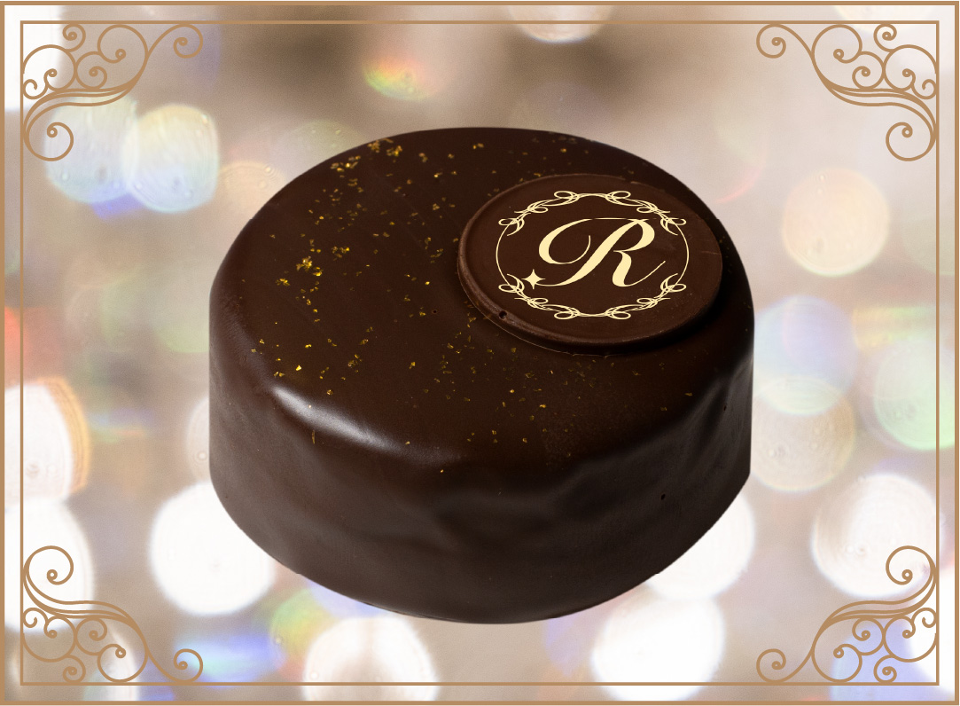 トップを飾る白いメダルチョコブランドのロゴをあしらい、周りに金箔を散らすことで月のような優しい輝きを表現しています。